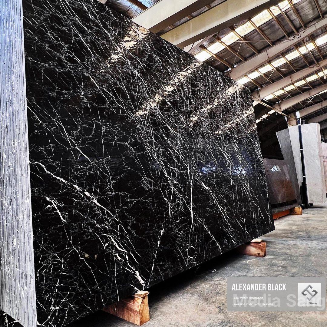 مرمریت زیبای شهرستان کاشان؛ با زمینه ای مشکی و خطوط روشن (سفید، طلایی). این سنگ از زمره ی مرمریت های لوکس است که در فضاهای داخلی کاربردهای متعددی دارد.