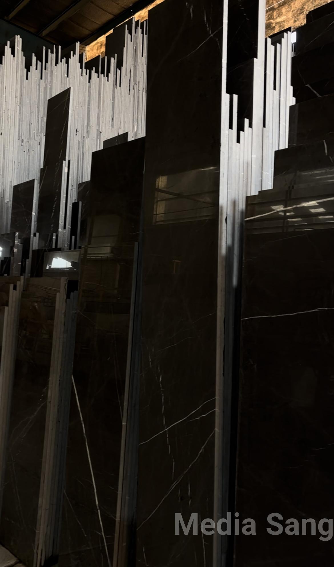 مرمریت زیبای شهرستان کاشان؛ با زمینه ای مشکی و خطوط روشن (سفید، طلایی). این سنگ از زمره ی مرمریت های لوکس است که در فضاهای داخلی کاربردهای متعددی دارد.